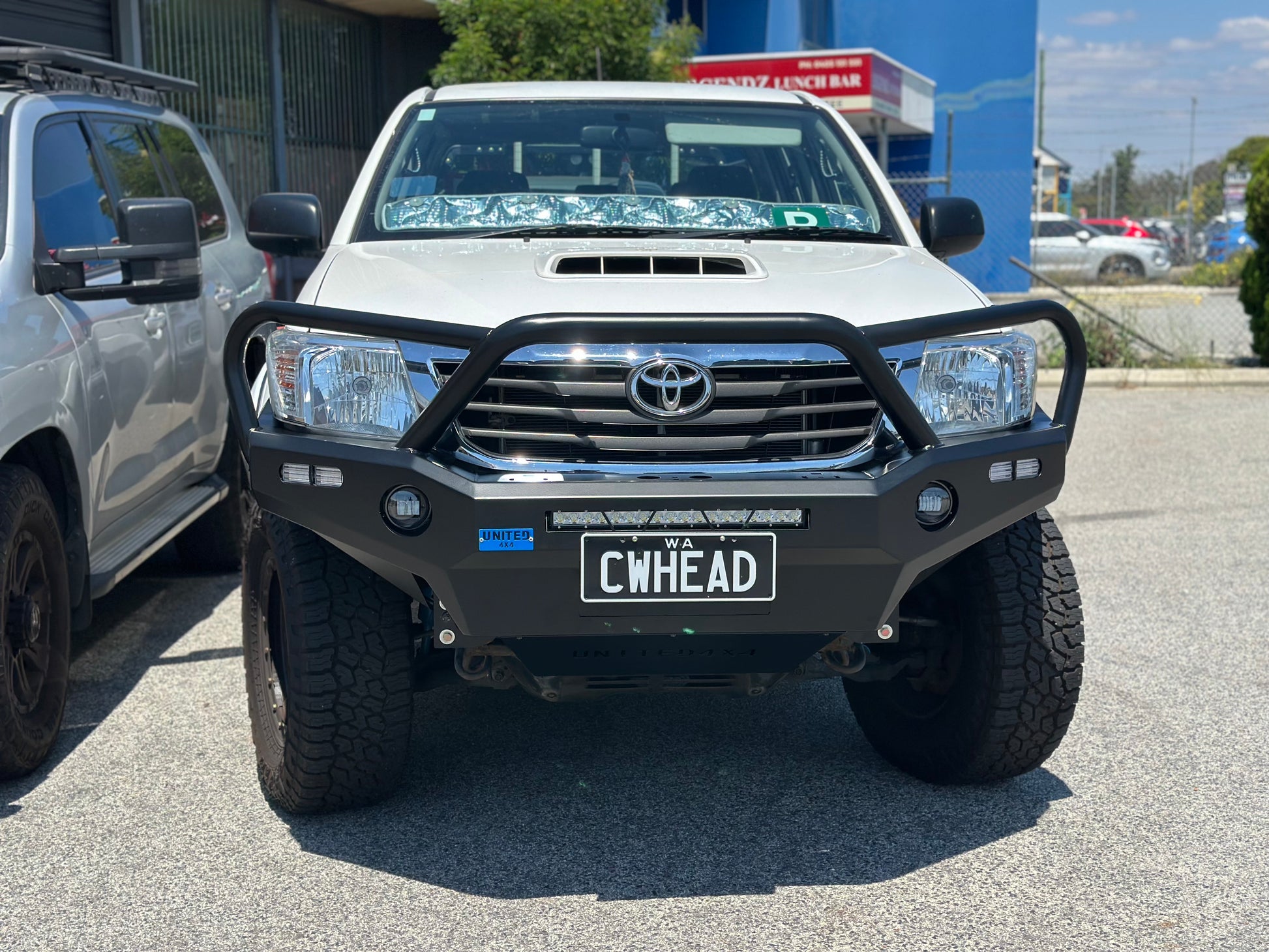 Designed to complement the sleek lines of your Hilux, our bullar is more than a rugged accessory—it’s a statement of strength and style. With fog and indicator lights included, you will light up the trail like never before.